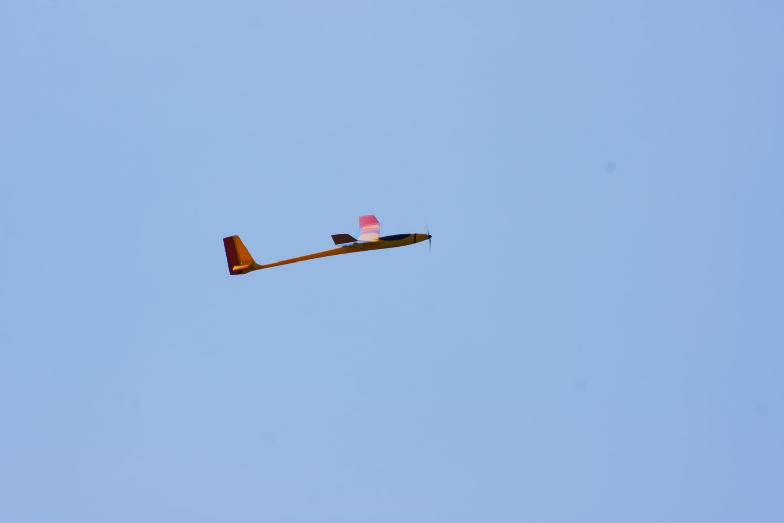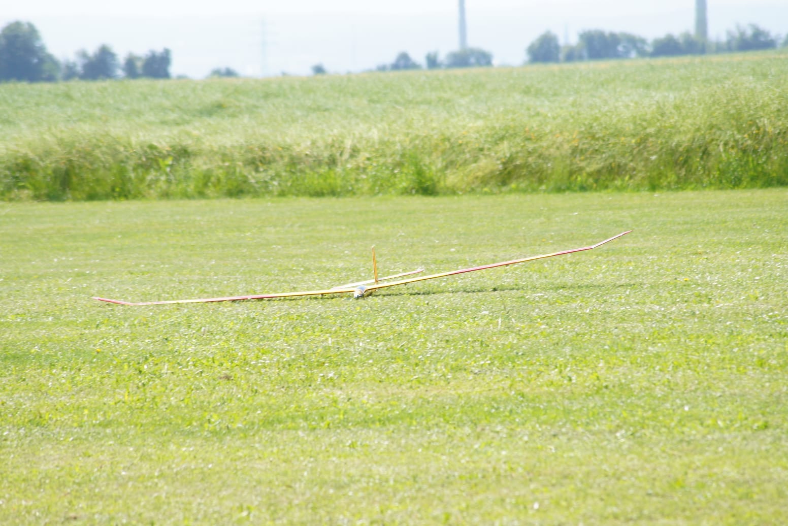 herausstellt, war er zu leicht und der Schwerpunkt zu weit hinten. Nach Bleizugabe flog er im Schlepp dann ausgeglichen.