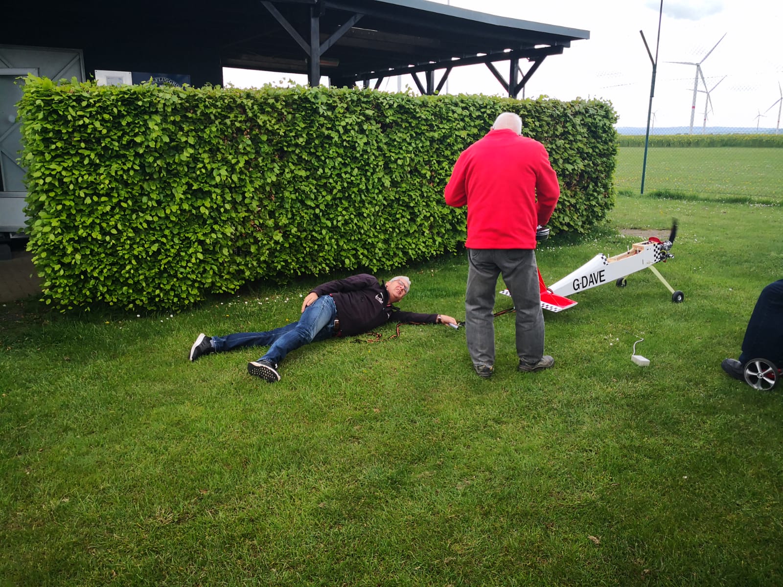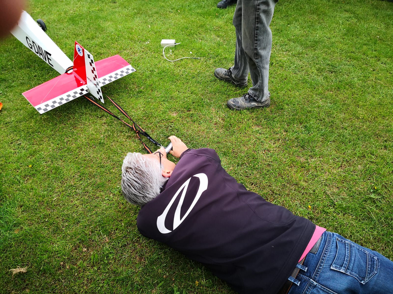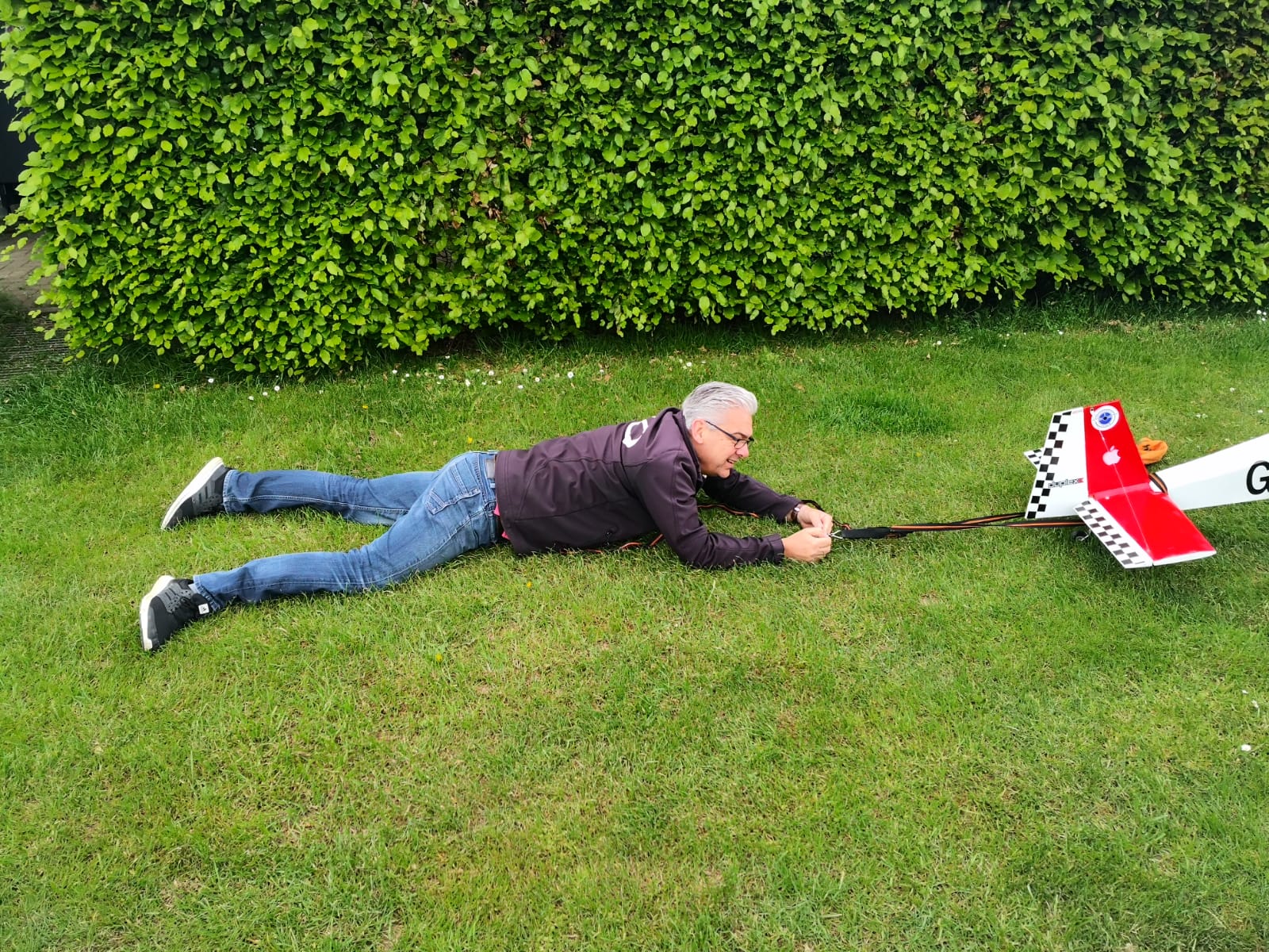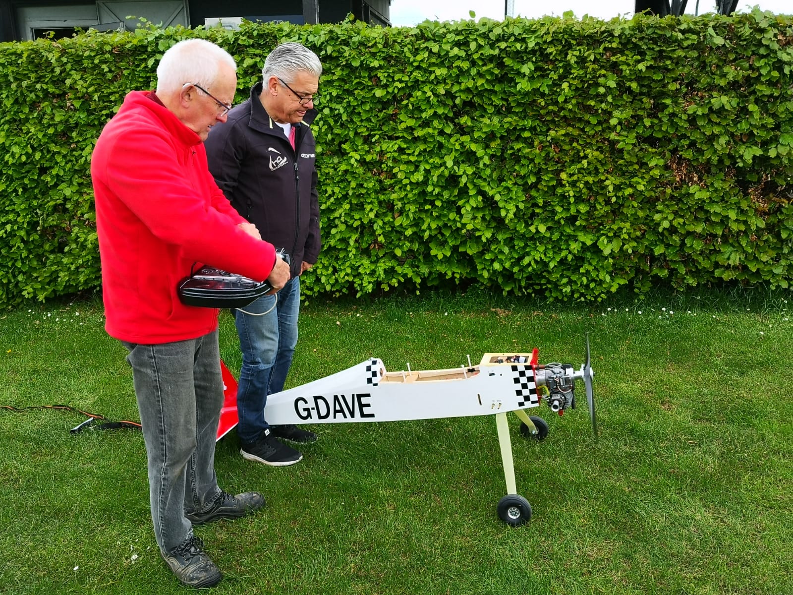 Unser Vorstand ließ es sich nicht nehmen, die Neuanschaffung, einen Big Jim 3, Spannweite: ca. 245 cm,